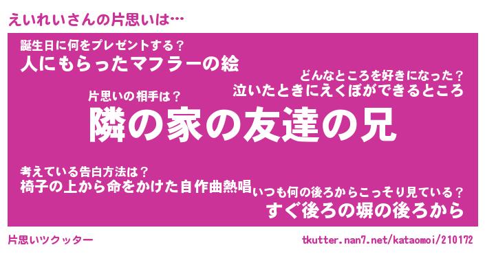 | 男性向けラノベタイトル風あだ名 | 『えいれいの憂鬱』 |