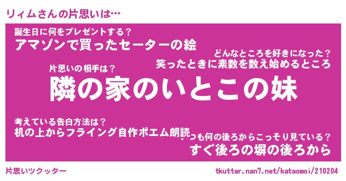 | 男性向けラノベタイトル風あだ名 | 『リィムの憂鬱』 |