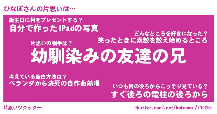 | ヘコむあだ名 | 『ひなっふぃ~』『つくし』『ひなを』 |
