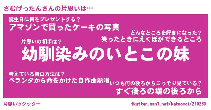 | ヘコむあだ名 | 『さむにゅー』『酢こんぶ』 |