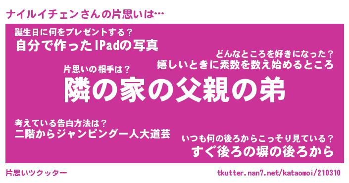 | 胡散臭い通販商品みたいなあだ名 | 『必ず成功する水晶球…その名も「ナイルイチェン」』 |