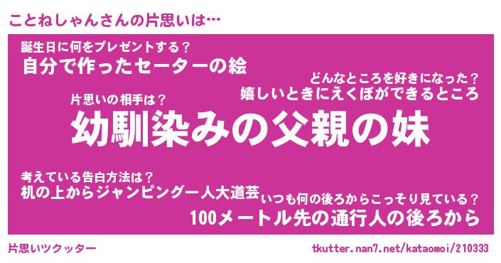 | ヘコむあだ名 | 『ことにゅー』『牛乳』『ことっちょ』 |
