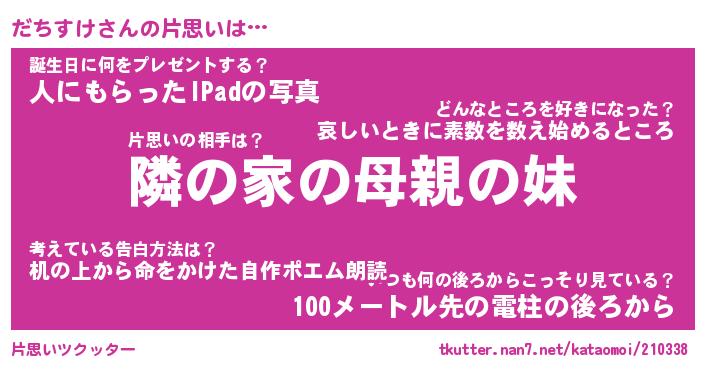 | っっっっっっっw …「あべせいた」 | 3月04日 01:50 |
