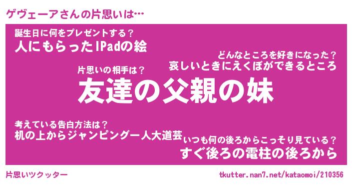| ヘコむあだ名 | 『ゲヴにゅー』『なまこ酢』 |