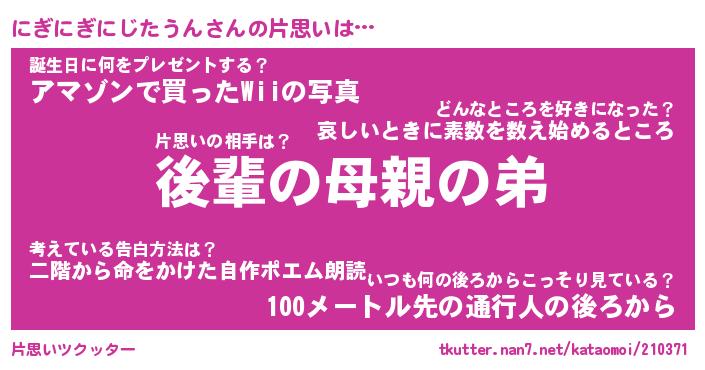 | 胡散臭い通販商品みたいなあだ名 | 『億万長者になれるブレスレット…その名も「にぎにぎにじたうん」』 |