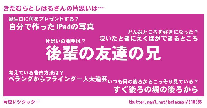 | 肩書あだ名 | 『きたむらとしはる御曹司』 |