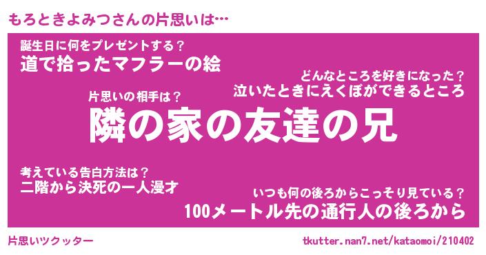 | 胡散臭い通販商品みたいなあだ名 | 『必ず成功する霊験あらたかなお札…その名も「もろときよみつ」』 |