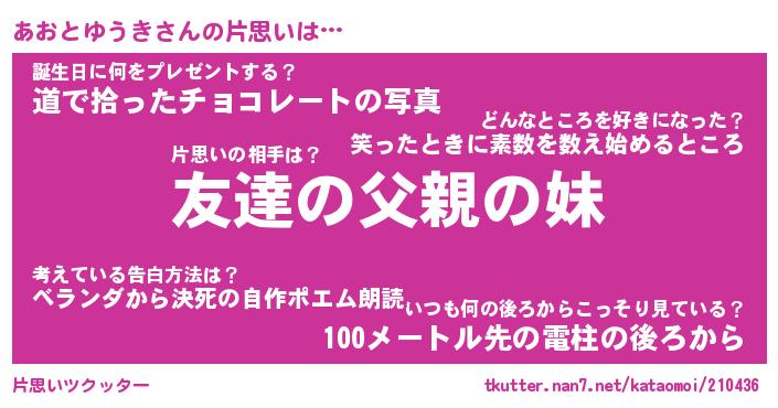 | 胡散臭い通販商品みたいなあだ名 | 『億万長者になれる水晶球…その名も「あおとゆうき」』 |