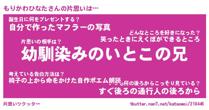 | 伝説のあだ名 | 『伝説のスナイパーもりかわひなた』 |