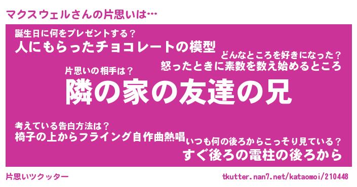 | 胡散臭い通販商品みたいなあだ名 | 『必ず成功する霊験あらたかなお札…その名も「マクスウェル」』 |