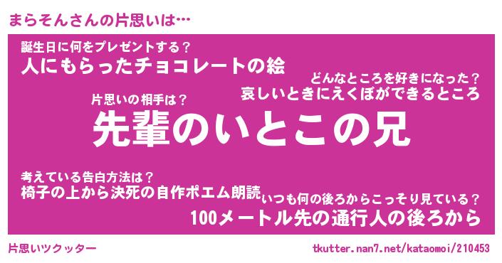 | ヘコむあだ名 | 『まらにゅー』『牛乳』『まらっちょ』 |