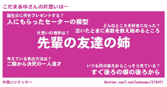 | ファンタジー風あだ名 | 『コダフェル』『エターナルコダマアユー』 |