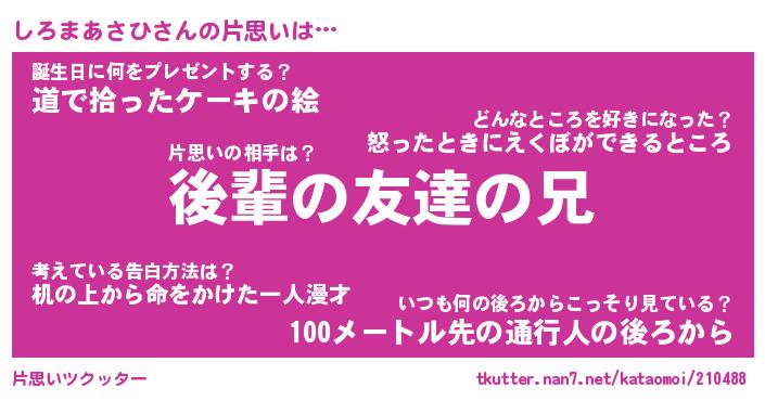 | ヘコむあだ名 | 『しろっふぃ~』『豆乳』『しろっ子』 |