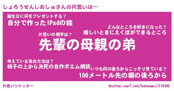 | ツイッター | しょろうせんしおしゅさんのツイッターID『katatsumuri_man』 |