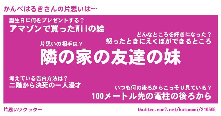 | 胡散臭い通販商品みたいなあだ名 | 『必ず成功する霊験あらたかなお札…その名も「かんべはるき」』 |