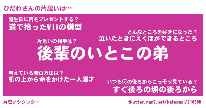 | ファンタジー風あだ名 | 『ヒダフェル』『エターナルヒダワー』 |