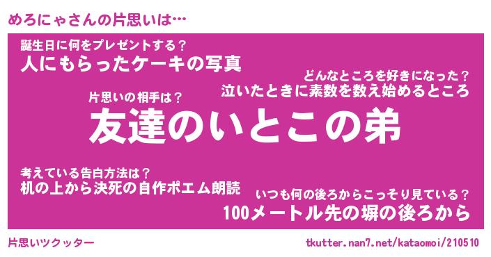 | ヘコむあだ名 | 『めろにゅー』『牛乳』『めろっ子』 |