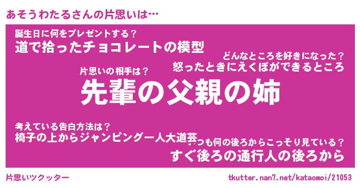 | ツイッター | あそうわたるさんのツイッターID『masyumaro_idle』 |