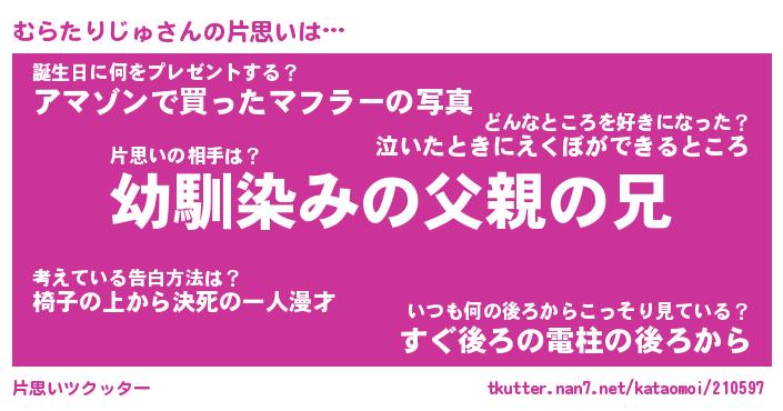 | 胡散臭い通販商品みたいなあだ名 | 『必ず成功する水晶球…その名も「むらたりじゅ」』 |