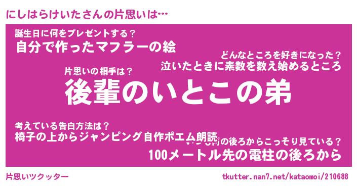 | ヘコむあだ名 | 『にしにゅー』『つくし』『にしお』 |