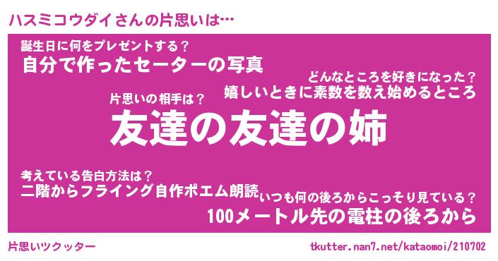 | ヒーロー風カッコイイあだ名 | 『スーパーハスミコウダイ』 |
