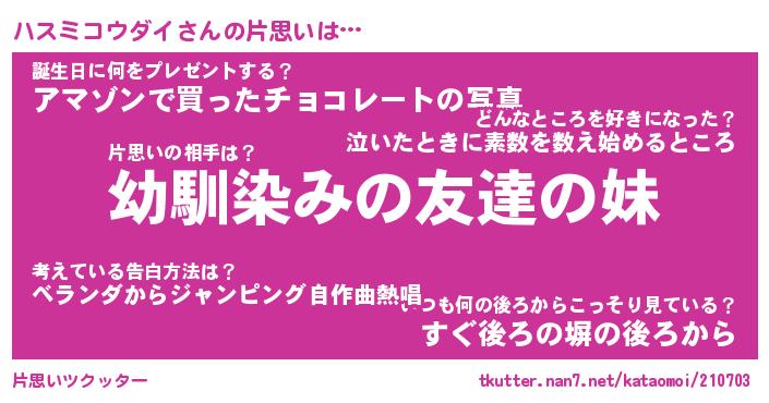 | 男性向けラノベタイトル風あだ名 | 『ハスミコウダイの憂鬱』 |