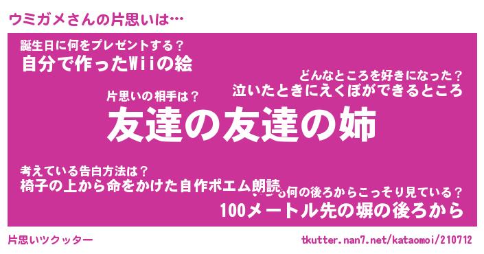 | ヘコむあだ名 | 『ウミっふぃ~』『牛乳』『ウミっ子』 |