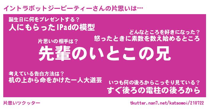 | ヒーロー風カッコイイあだ名 | 『スーパーイントラボットジーピーティー』 |