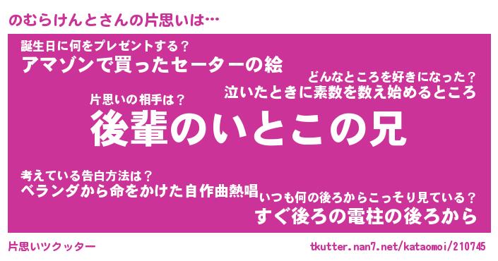 | 女子向けラノベタイトル風あだ名 | 『誰かこののむらけんとを説明してください! ~契約から始まるウェディング~』 |