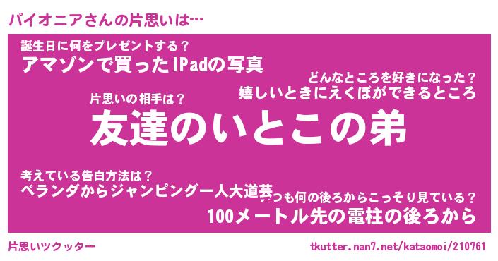 | ヘコむあだ名 | 『パイもー』『つくし』『パイぷりん』 |