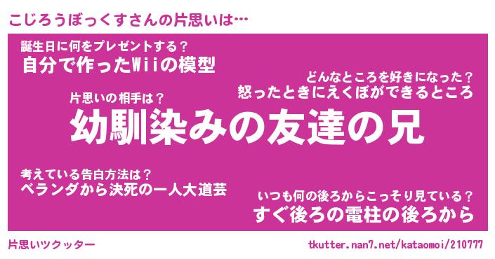 | 胡散臭い通販商品みたいなあだ名 | 『必ず成功する霊験あらたかなお札…その名も「こじろうぼっくす」』 |