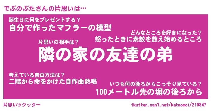 | ヘコむあだ名 | 『でぶもー』『つくし』『でぶを』 |