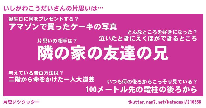 | 伝説のあだ名 | 『伝説のスナイパーいしかわこうだい』 |