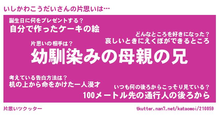 | 男性向けラノベタイトル風あだ名 | 『いしかわこうだいの憂鬱』 |