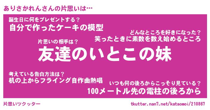 | ヘコむあだ名 | 『ありにゅー』『つくし』『ありを』 |