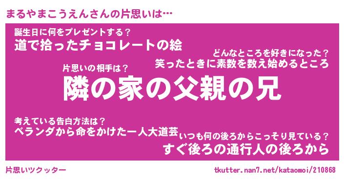 | ヘコむあだ名 | 『まるにゅー』『豆乳』『まるを』 |