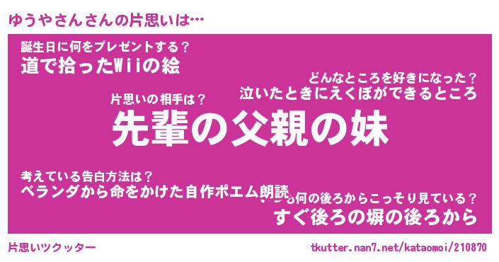 | ヒーロー風カッコイイあだ名 | 『スーパーユウヤサン』『魔戒騎士ユウ』 |