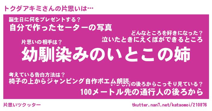 | 男性向けラノベタイトル風あだ名 | 『トクダアキミの憂鬱』 |