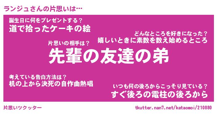 | ヘコむあだ名 | 『ランっふぃ~』『つくし』 |