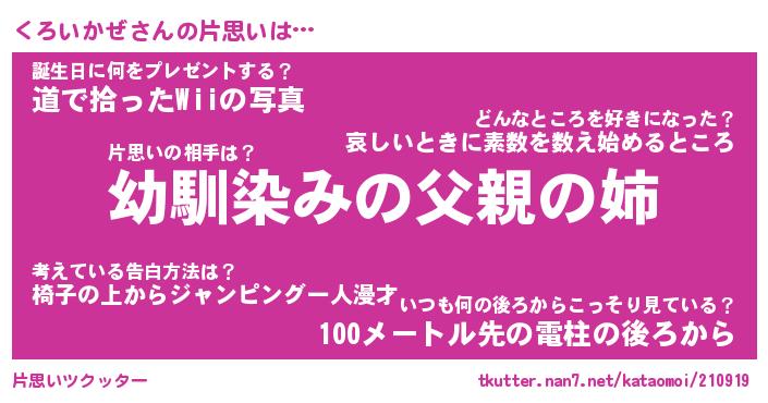 | 男性向けラノベタイトル風あだ名 | 『くろいかぜの憂鬱』 |