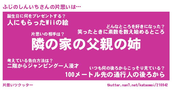 | ヘコむあだ名 | 『ふじにゅー』『豆乳』『ふじぷりん』 |