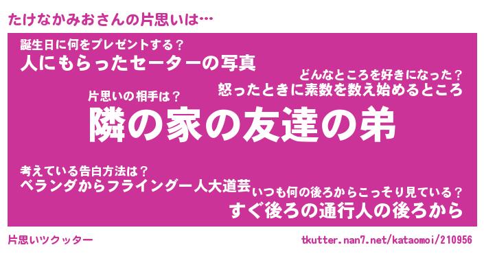| ツイッター | たけなかみおさんのツイッターID『tsukushi_kun』 |