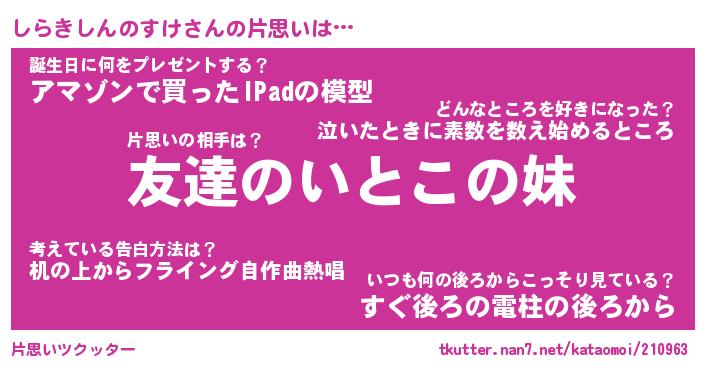 | 意味不明あだ名 | 『ペロリンしらきしんのすけ』 |