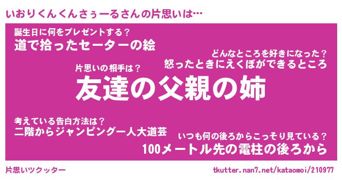 | 胡散臭い通販商品みたいなあだ名 | 『億万長者になれる水晶球…その名も「いおりくんくんさぅーる」』 |