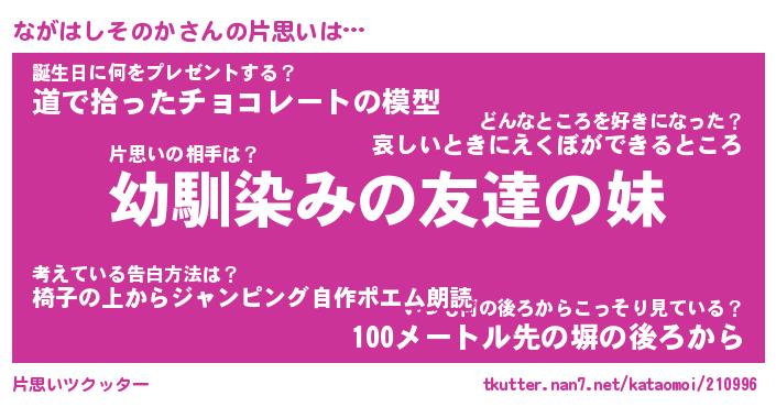 | 伝説のあだ名 | 『伝説のスナイパーながはしそのか』 |