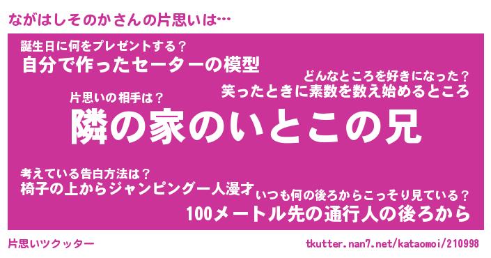 | 胡散臭い通販商品みたいなあだ名 | 『モテモテ間違いなし水晶球…その名も「ながはしそのか」』 |
