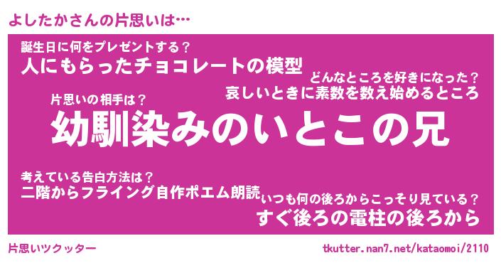 | ポケモン風あだ名 | 『ヨシチュウ』『ヨシタダネ』 |