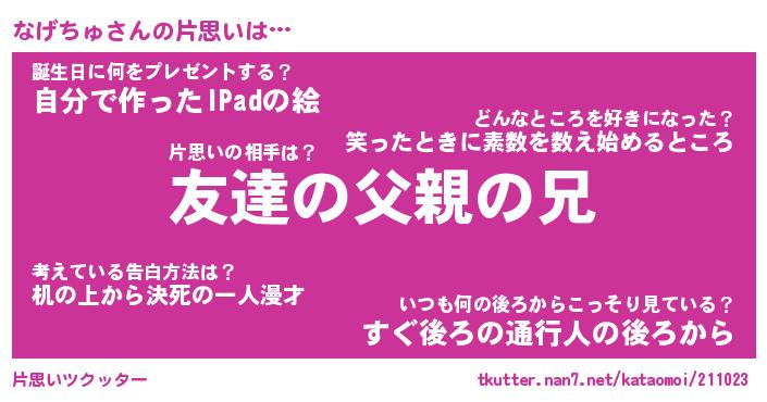 | 胡散臭い通販商品みたいなあだ名 | 『億万長者になれる水晶球…その名も「なげちゅ」』 |