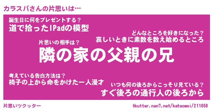 | 胡散臭い通販商品みたいなあだ名 | 『モテモテ間違いなし水晶球…その名も「カラスバ」』 |