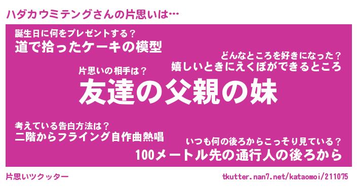 ハダカウミテングさんの片思いをツクッター!